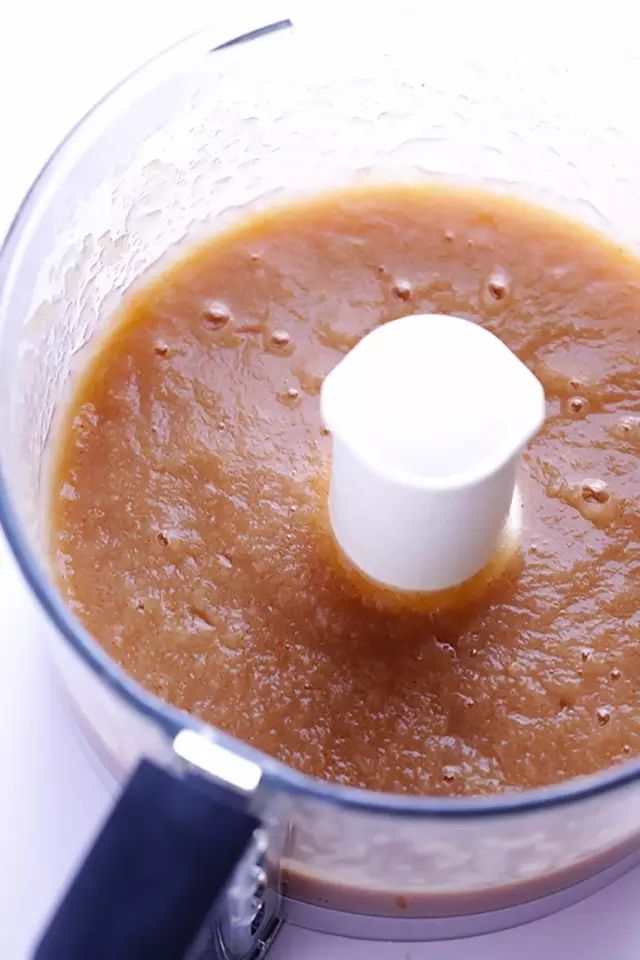 当变至浓稠时,关火,将混合物倒入食物处理器中,搅拌至混合物变得很顺滑;