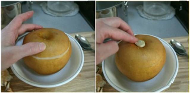 当梨蒸好后,你可以看到梨的外皮裂开,将皮轻轻地剥掉就可以吃了。