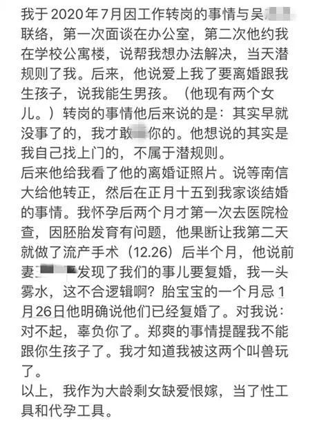 婚内出轨、流产两次,南信大一院长被指“潜规则”女教师!