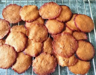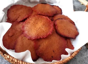 5、直到柿子泥成这种黏稠的,类似于果酱的状态,就可以了。6、取一张锡纸或烘焙油纸,用小勺将炒黏稠的柿子泥放到上面,并用勺子的背部或直接用手指按压,将柿子泥摊成薄薄的圆片状,不要厚了,越薄越好,全部摊好后,放到烤架上。烤箱提前预热好,送入烤箱中层,上下火120度慢烤约50分钟,具体时间根据自己摊的薄厚决定,烤到颜色变深,边角发焦就可以了。中间取出翻一次面,继续送入烤箱烤制。