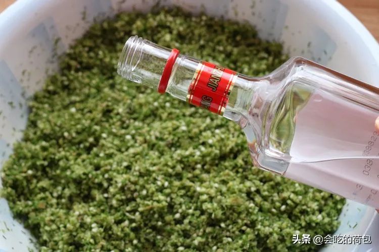 下面就要告诉您一个让韭菜花酱久放不坏的小秘诀,就是加一点白酒,白酒不仅可以增香,还能起到防腐的作用。白酒要高度的,没必要太贵的。放的量也不要太多,我腌了3斤韭菜花,放了一两白酒。太多的话,酒的香气容易遮住韭菜花的香气。