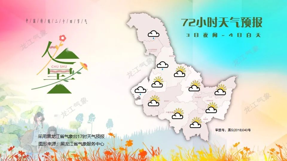 3日夜间到4日白天:大兴安岭、黑河西部、齐齐哈尔南部多云有阵雨,其它地区晴有时多云。