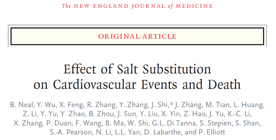 ① Bruce Neal, et al. Effect of Salt Substitution on Cardiovascular Events and Death. The N Engl J Med, 2021.