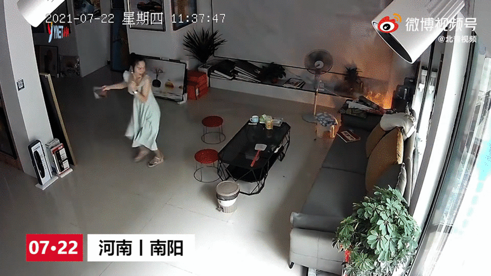 △7月22日,河南南阳一名女子家中充电器突然发生爆炸起火。