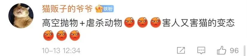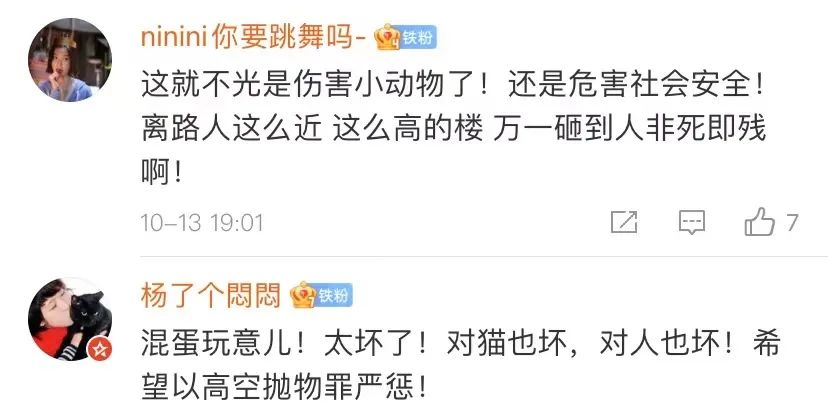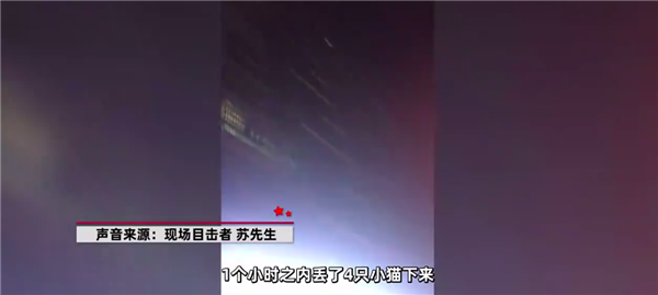 目击者说,当晚前后一共掉下来4只猫,其中2只落在底商的顶棚上,2只直接砸到了路上,4只猫都已死亡。“我们的顶棚都是铁板一片一片靠上去的,高空坠物砸中后很可能会掉落砸中客人,特别危险。”事发后,目击者已报警。