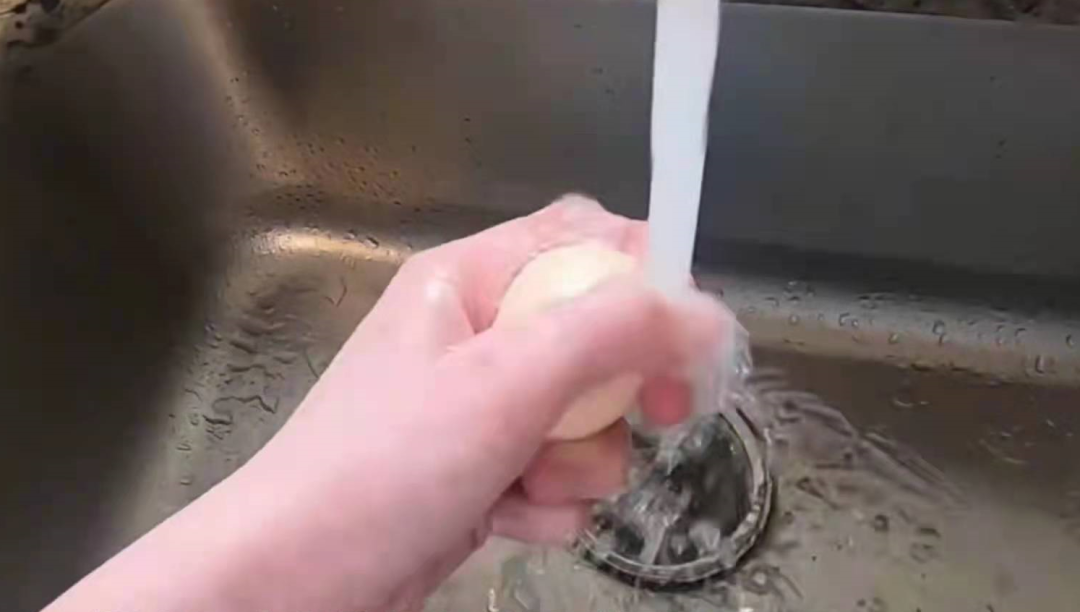 刘女士经常反复用清水清洗鸡蛋,这样会把鸡蛋表面看不见的蛋壳外膜洗掉。