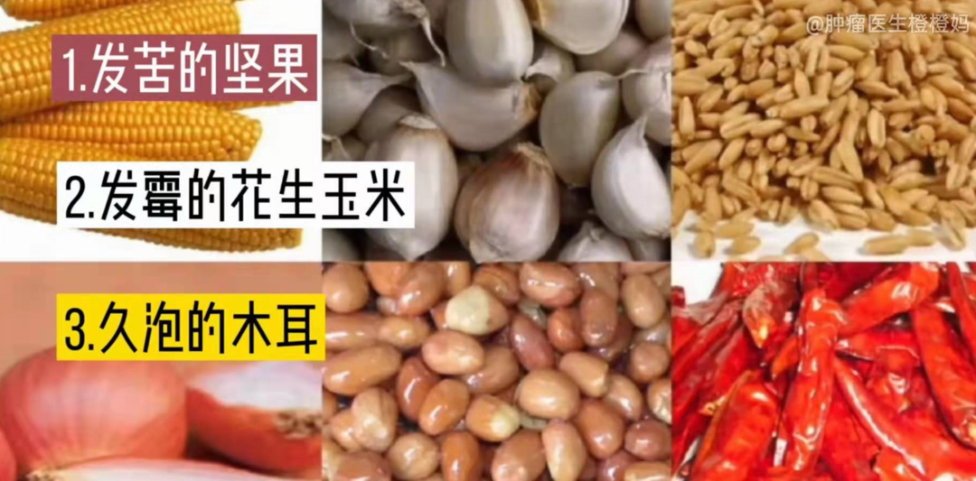 那么黄曲霉素主要存在哪些地方呢?最常见在三个地方,一发苦的坚果,二发霉的花生玉米,三久泡的木耳。