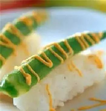 美乃滋1/2小匙、黄芥末酱1/2小匙、秋葵1支、寿司饭适量;