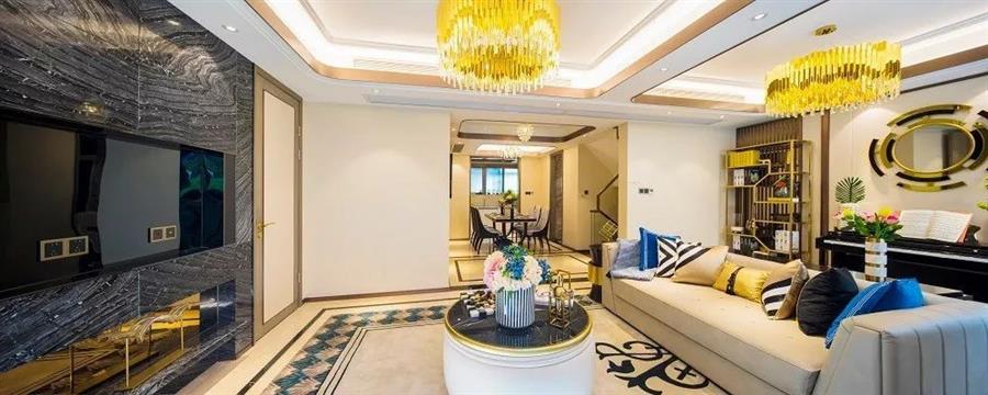 四室两厅两卫的设计,给予了一家五口三代人舒适宽敞的生活空间。镜面玻璃与水纹大理石的搭配,更衬以设计的错觉,让灯光在镜面的折射下,更加熠熠生辉,灯光所带来的暖一下子蔓延开来,满室的温暖。