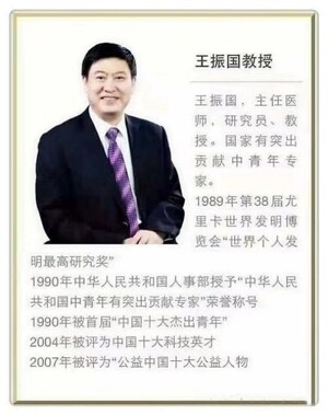 王振国,主任医师,研究员、教授国家有突出贡献中青年专家,享受国务院特殊津贴。1989年在第38届尤里卡世界发明博览会上获得“世界个人发明最高研究奖";1990年荣获首届“中国十大杰出青年”称号;2004年被评为“全国十大科技英才”。